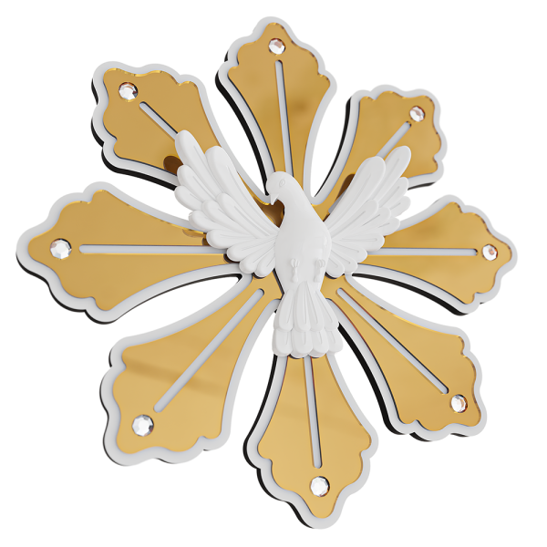 Lindo objeto de fé e devoção, Adorno Esplendor Divino Espírito Santo MDF e Acrílico Dourado Espelhado 32cm.