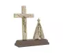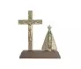 Lindo objeto de fé e devoção, Oratório Crucifixo com Imagem de N Sra Aparecida Ouro Velho 15cm.