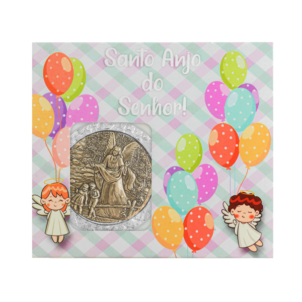 Lindo Medalhão de berço com Anjo da Guarda para proteção do Bebê. Bela lembrança para recém-nascidos e batizados, uma recordação para toda vida. Utilize o verso para escrever o nome de seu(ua) filho(a). Acompanha caixinha para presente, cartão para considerações e fita cetim rosa e azul.