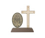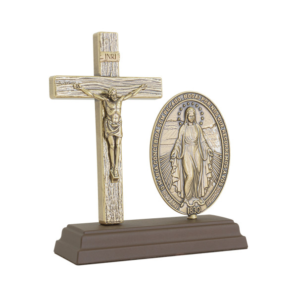 Lindo objeto de fé e devoção, Oratório Crucifixo com Imagem de Nossa Senhora das Graças Ouro Velho 15cm.