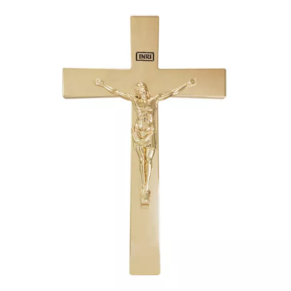 Lindo objeto de fé e devoção, presenteie quem você ama com este lindo Adorno Cruz Dourada Parede 32cm.