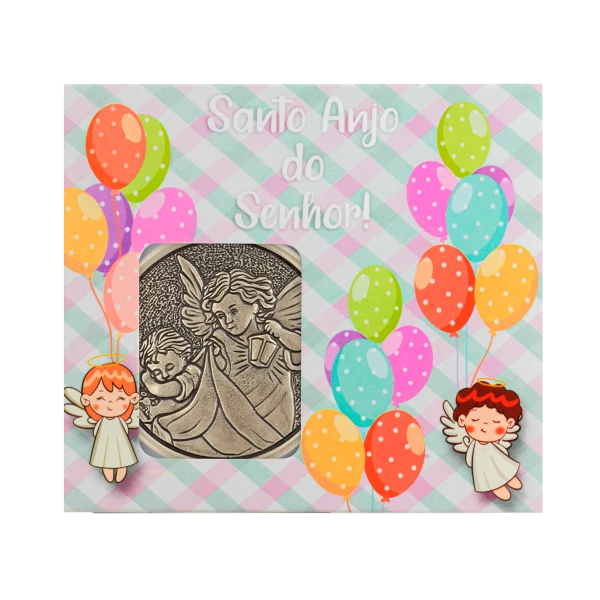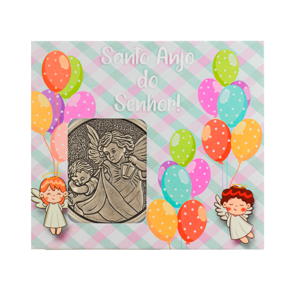 Lindo medalhão de berço Anjo Protetor para proteção do Bebê. Bela lembrança para recém-nascidos e batizados, uma recordação para toda vida. Utilize o verso para escrever o nome de seu(ua) filho(a). Acompanha caixinha para presente, cartão para considerações e fita cetim rosa e azul.