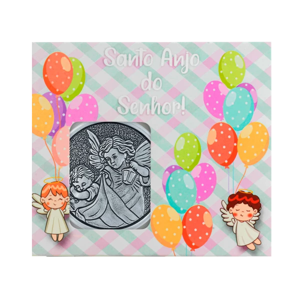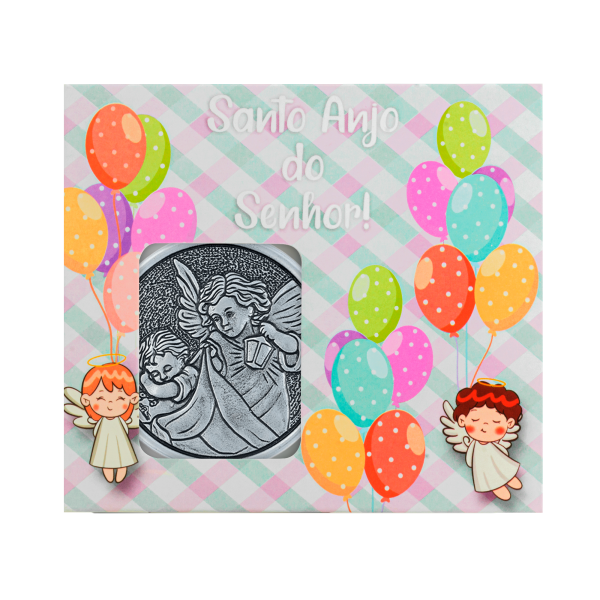 Lindo medalhão de berço Anjo Protetor para proteção do Bebê. Bela lembrança para recém-nascidos e batizados, uma recordação para toda vida. Utilize o verso para escrever o nome de seu(ua) filho(a). Acompanha caixinha para presente, cartão para considerações e fita cetim rosa e azul.