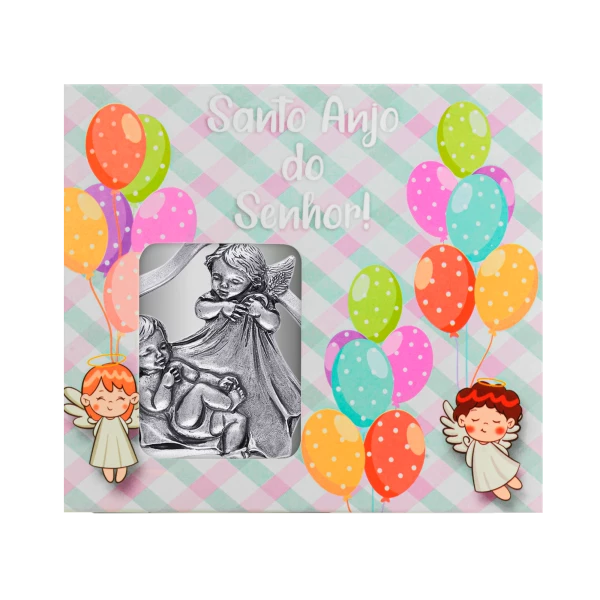 Lindo medalhão de berço Anjo e Bebê. Bela lembrança para recém-nascidos e batizados, uma recordação para toda vida. Utilize o verso para escrever o nome de seu(ua) filho(a). Acompanha caixinha para presente, cartão para considerações e fita cetim rosa e azul.