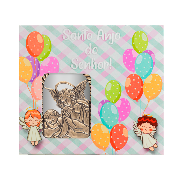 Lindo medalhão de berço Anjo da Guarda para proteção do Bebê. Bela lembrança para recém-nascidos e batizados, uma recordação para toda vida. Utilize o verso para escrever o nome de seu(ua) filho(a). Acompanha caixinha para presente, cartão para considerações e fita cetim rosa e azul.