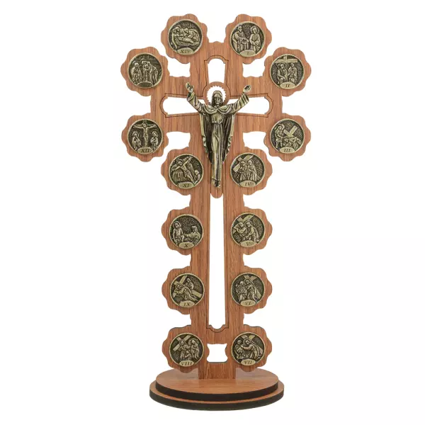 Adorno Crucifixo Via Sacra MDF com Cristo Ressuscitado em Metal 32cm. Confeccionado em MDF, Jesus Cristo e as 14 passagens em Metal, com um visual que traz traços artísticos únicos, bem como um design clássico aliados a elementos modernos, ele transmite beleza e requinte, sem deixar de lado a sua conexão com a fé. Desenvolvido em material de excelente qualidade que garante mais resistência e durabilidade.
