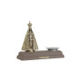 Imagem em metal de 10cm e base em madeira nobre e copinho de alumínio para porta velas. Este é um dos diversos artigos de Nossa Senhora Aparecida disponíveis na loja Etik Artigos Religiosos.