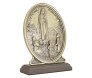Adorno de mesa, Nossa Senhora de Fátima, Rainha do Rosário. Além de ser uma lembrança religiosa pode ser usado também como um item decorativo em casa, escritórios e ambientes corporativos. Confeccionado em metal e com a medida de 17 cm garante uma peça rica em detalhes varolizando o ambiente.