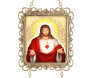 Lindo objeto de fé e devoção, Escapulário dourado com imagem do Sagrado Coração de Jesus e Nossa Senhora do Carmo.