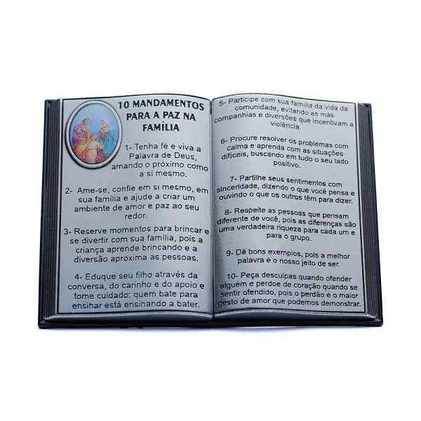 Lindo objeto de fé e devoção, presenteie quem você ama com este lindo Adorno de mesa Bíblia com os 10 Mandamentos para a Paz na Família.