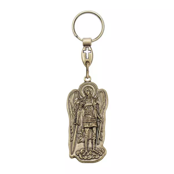 Chaveiro de São Miguel Arcanjo. Confeccionado em metal e com um visual que traz traços artísticos únicos, bem como um design clássico aliados a elementos modernos, ele transmite beleza e requinte, sem deixar de lado a sua conexão com a fé. Desenvolvido em material de excelente qualidade que garante mais resistência e durabilidade.
