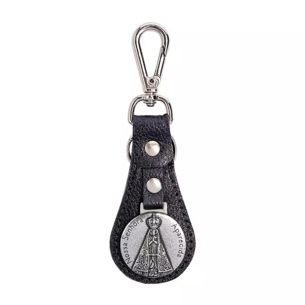 Chaveiro em Couro Legítimo Nossa Senhora Aparecida. Confeccionado em metal e com um visual que traz traços artísticos únicos, bem como um design clássico aliados a elementos modernos, ele transmite beleza e requinte, sem deixar de lado a sua conexão com a fé. Desenvolvido em material de excelente qualidade que garante mais resistência e durabilidade.