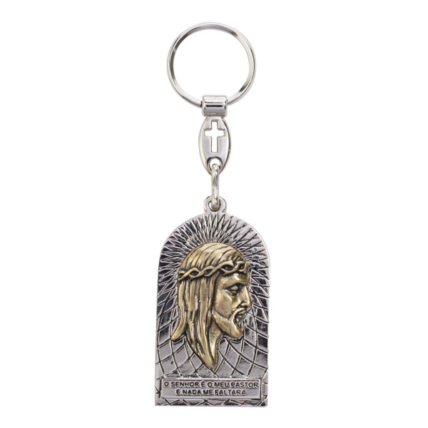 Chaveiro Face de Cristo. Confeccionado em metal e com um visual que traz traços artísticos únicos, bem como um design clássico aliados a elementos modernos, ele transmite beleza e requinte, sem deixar de lado a sua conexão com a fé. Desenvolvido em material de excelente qualidade que garante mais resistência e durabilidade.