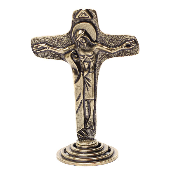 Adorno de mesa da Crucifixo da Unidade de 8cm. Confeccionado em metal e com um visual que traz traços artísticos únicos, bem como um design clássico aliados a elementos modernos, ele transmite beleza e requinte, sem deixar de lado a sua conexão com a fé. Desenvolvido em material de excelente qualidade que garante mais resistência e durabilidade.