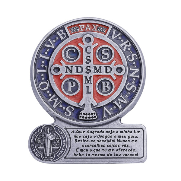 Lindo objeto de fé e devoção, presenteie quem você ama com este lindo Adorno de mesa Medalha de São Bento com Oração 10cm