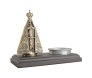 Imagem em metal de 17cm e base em madeira nobre e copinho de alumínio para porta velas. Este é um dos diversos artigos de Nossa Senhora Aparecida disponíveis na loja Etik Artigos Religiosos.