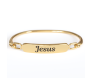 Linda Pulseira com o Nome Jesus. Confeccionada em metal no banho ouro light ela é regulável no pulso. Acessório feminino que demonstra grande respeito e devoção no uso diário.