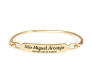Linda Pulseira com a escrita São Miguel Arcanjo. Confeccionada em metal no banho ouro light ela é regulável no pulso. Acessório feminino que demonstra grande respeito e devoção no uso diário.